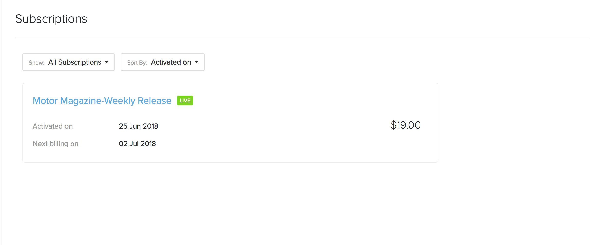You can view the list of subscriptions under Subscriptions and the plan name, subscription creation date, amount and status of the subscriptions will be displayed. Clicking on any of the subscriptions will display detailed information related to that subscriptions.
